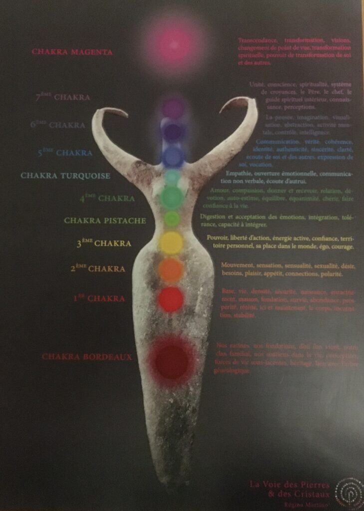 Je pense sincèrement que nous pouvons surfer sur la vague appelé FLOW lorsque l’ensemble des composantes de notre être sont en harmonie, centrées et alignées. Ces composantes, au nombre de 7, 8 ou 11 selon les représentations culturelles et spirituelles. Elles adoptent parfois des couleurs, comme par exemple les chakras du yoga représenté sur cette image symbolique de l’être humain